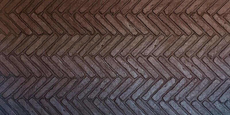Desen: İnce ve uzun tuğlaların karakteristik balıksırtı (Herringbone) düzeninde, yani “V” şeklinde veya zikzaklı olarak dizildiği üç boyutlu bir tuğla deseni. Tuğlalar arasındaki derz boşlukları belirgindir.